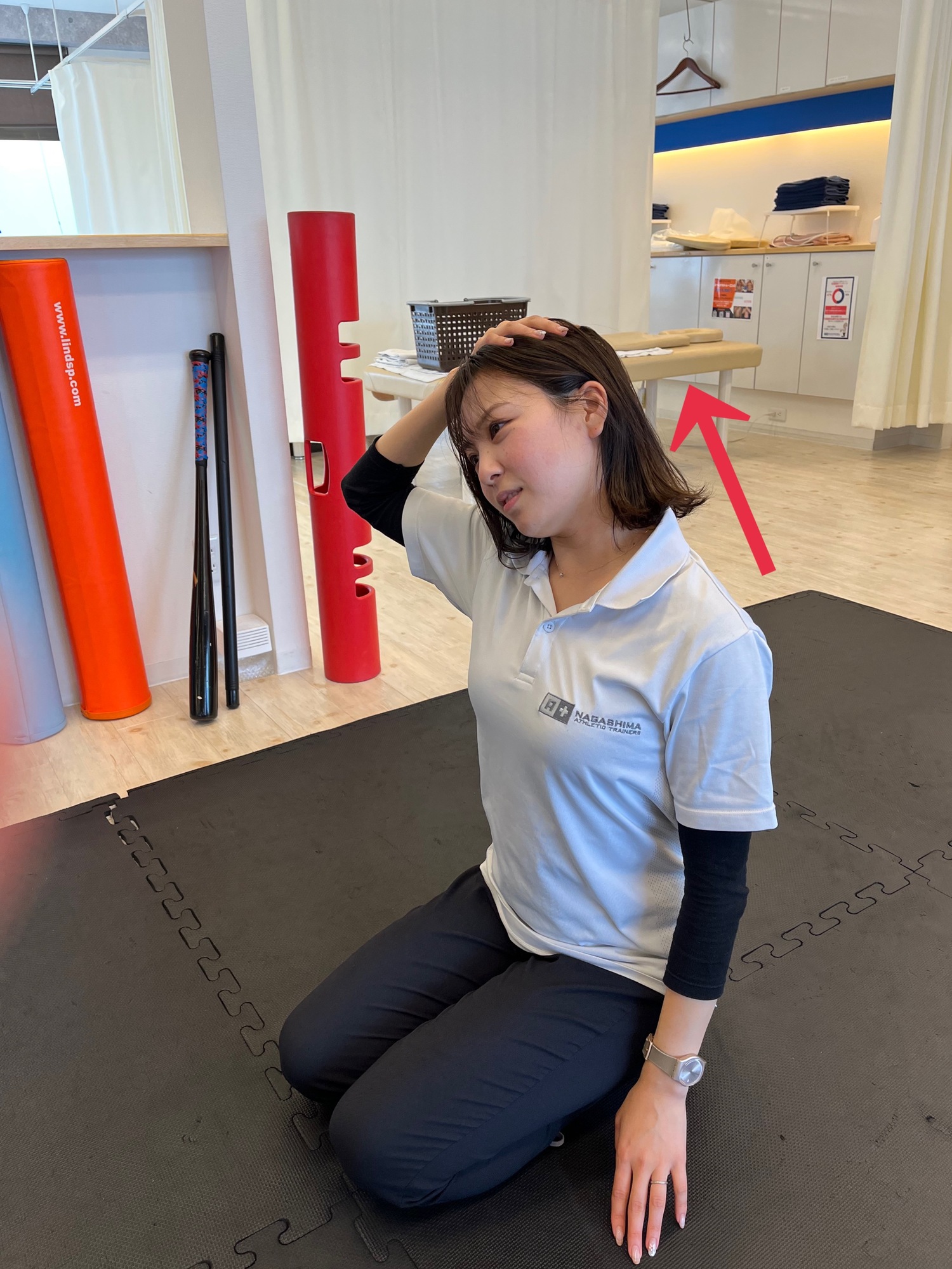 このエクササイズは、肩甲骨の位置を背骨に近づけ胸を張るような動きを含むストレッチです。